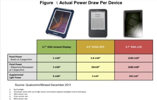 電子書閱讀器長期使用名為EPD的電子紙,而美國高通推出了Mirasol彩色顯示技術。高通與韓國最大圖書銷售商聯合開發的非英語閱讀器Kyobo采用了這種彩色技術。