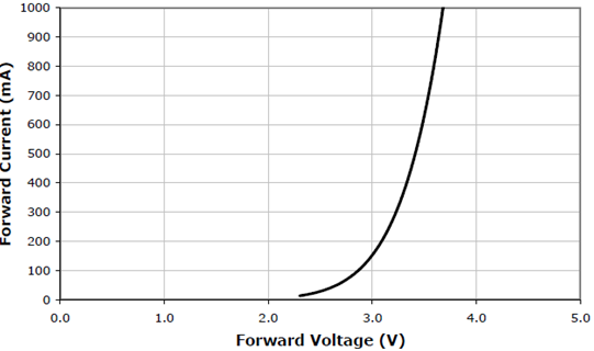 我們都知道,LED是一個二極管,而二極管最重要的電特性就是它的伏安特性。圖2中給出了Cree公司的XLamp7090XR-E的伏安特性。