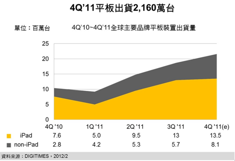 • 2011年全球品牌Tablet出貨達(dá)6,328萬(wàn)臺(tái)