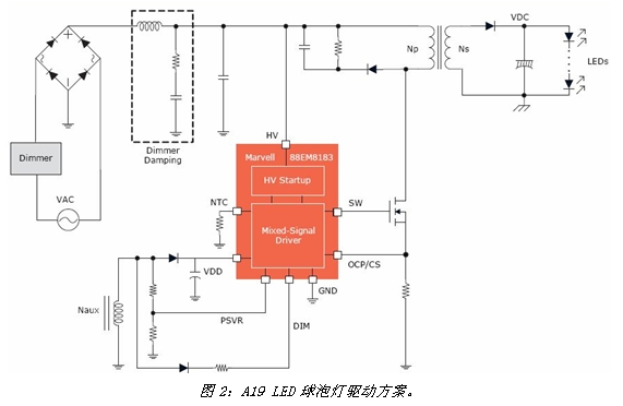 消費(fèi)者用LED節(jié)能燈取代白熾燈等傳統(tǒng)照明解決方案的同時,也希望得到同樣或更好的照明體驗(yàn)。不幸的是,他們常常發(fā)現(xiàn)LED燈在調(diào)光能力上有問題,因此覺得LED燈幾乎不能調(diào)光或調(diào)光時會閃爍。很多LED燈與家中已安裝的壁式調(diào)光器也不兼容。Marvell最新的88EM8183深度調(diào)光單級交流/直流LED驅(qū)動器IC為OEM廠商和ODM廠商提供了兼容性最廣泛的調(diào)光解決方案,該IC與全球市場上絕大多數(shù)調(diào)光器都兼容,而且提供卓越的光輸出質(zhì)量,可提高消費(fèi)者的滿意度,減少退貨。