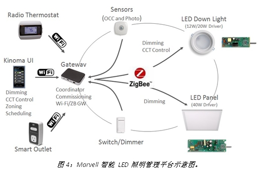 Marvell智能 LED照明管理平臺提供了完全集成的LED照明和無線控制系統(tǒng),因此不論是易用性的提升還是安裝成本的降低都趨向于極致,大大簡化了使用和維護(hù)難度,使得非專業(yè)人員也能輕松應(yīng)對。該平臺的一大特色是允許終端用戶可以使用智能手機(jī)和平板電腦方案,使他們可以方便地從任何地方管理、分析并維護(hù)一個更具性價比的數(shù)字照明方案。