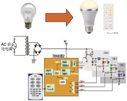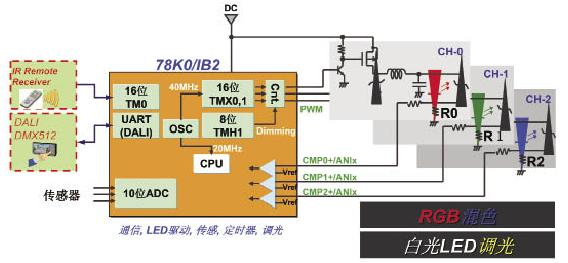 78K0/IB2低成本高亮度LED調(diào)光(調(diào)色)控制的優(yōu)點:
