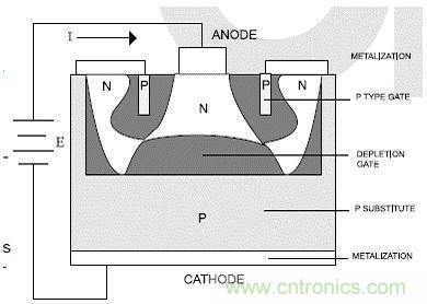 當一個反向偏壓加到PN結的陰極和陽極時,這個恒流二極管開始導通,當反向偏壓增加到VL時(見圖2),其電流由于N區的體電阻也跟著增加,當電流增加到 曲線的拐點時,在N區和P型柵之間形成一個耗盡層。這個耗盡層減小了N區中電流的路徑也就減慢了電流的增加速度。結果這個耗盡層遇到了P型柵于是就產生了 夾斷效應,這使得電流變成恒定而幾乎和所加電壓無關,直到所加電壓達到一個擊穿點Vb。如果所加電壓反過來,那么就相當于一個正向電壓加到一個PN結,其 特性就和一個普通二極管加上正向電壓時一樣。