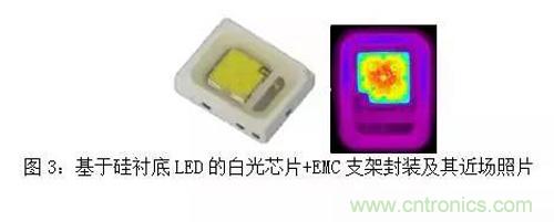 (3)垂直結(jié)構(gòu)的芯片,不僅可以采用陶瓷封裝工藝,也可以采用更為廉價(jià)的支架封裝方式,進(jìn)一步降低客戶(hù)的使用成本,如圖3所示,這為高品質(zhì)照明提供了無(wú)限的可能。利用硅襯底LED芯片,可實(shí)現(xiàn)照明品質(zhì)更佳、系統(tǒng)成本更低、設(shè)計(jì)方案更靈活、更具創(chuàng)新性的LED照明解決方案。