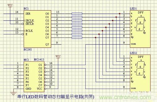 串行LED數碼管動態掃描顯示電路(共陰)
