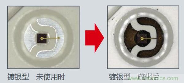 通過對比得出ROHM新產(chǎn)品的優(yōu)勢:一是能保持亮度,二保護芯片鍵合材料不受損壞,三無需其他保護對策。