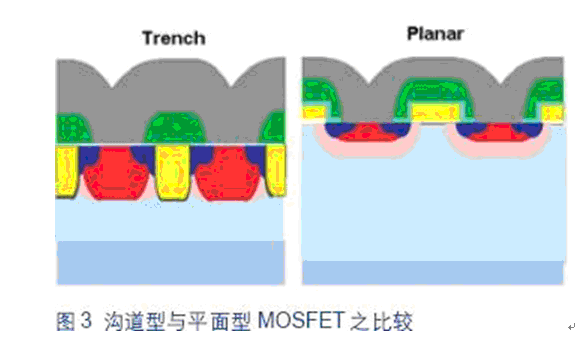 - 在硅片上蝕刻垂直溝道獲得更高的單元密度和更低的導通阻抗