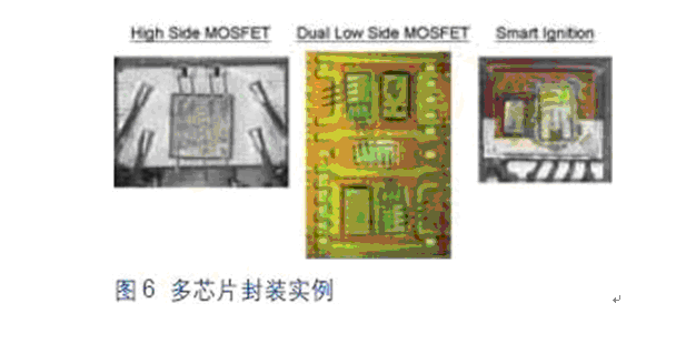 圖6所示為目前車載系統中采用多芯片封裝的幾個實例。這些智能化器件可以提供更高的系統性能監控能力,通過集成保護功能提高功率系統的可靠性。如過流、過壓和過熱保護等功能都是這類產品的標配。當器件感測到有可能發生上述異常狀況時,能夠把功率MOSFET置于自我保護整個系統的環境中。此外,這些器件還集成有附加診斷功能,用以監控負載開路或短路,有助于指導汽車機械裝置隔離和糾正車輛中出現的問題。