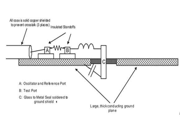 測試電感性能的最有效方法就是將被測試電感放置在最終開關(guān)電源電路上,然后對此電路的效率進行測量。但是,這種測試方法需要有最終電路,不易采用。現(xiàn)在,有一種相對簡單的測試方法,可以在設(shè)計開關(guān)電源前對電感的磁芯損耗進行測試(在其設(shè)定的開關(guān)頻點上)。首先,將磁芯串連放置在低損耗電容介質(zhì)上(比如鍍銀云母)。然后,用一系列共振模驅(qū)動。其中介質(zhì)的電容值需要與被測電感的開關(guān)頻率一致。最后采用網(wǎng)絡(luò)分析儀來完成整個測試過程(信號發(fā)生器加上一個射頻伏特計或者功率計也可以完成測試)。測試設(shè)備的結(jié)構(gòu)如圖2所示。