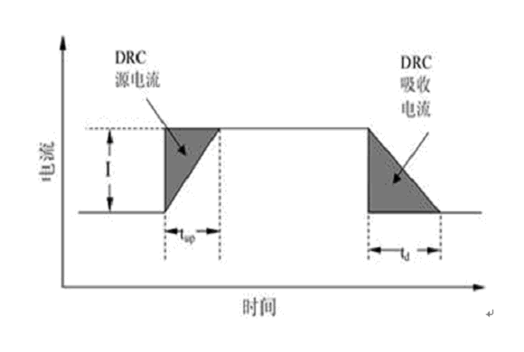 假定DRC電路遠遠快于變換器,則DRC的工作時間取決于DC/DC變換器的電流改變速率Sr,并可分為不同的電流上升速率(Sru)及下降速率(Srd)。現在,我們研究一個負載電流脈沖期間