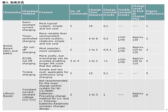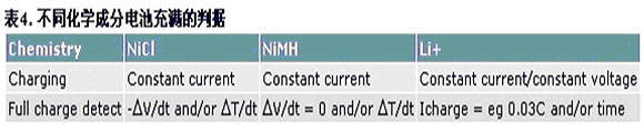 如上所示,電池化學成分和充電技術不同,充電終止的判定條件也不同。