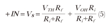 等式1忽略了輸入偏置電壓和輸入偏置電流的影響。輸出電壓VO有兩個值,一個是VOL,即輸出低飽和電壓,一個是VOH,即輸出高飽和電壓,因此+IN電壓有兩種計算結果。輸出飽和電壓值在大多數數據手冊中都有規定。狀態轉換電壓是輸入信號VS在+IN=VTH時的值。