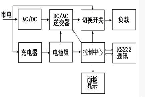 圖1 為在線式UPS 的主電路,在線式UPS 電源具有獨(dú)立的旁路開關(guān)、AC/DC 整流器、充電器、DC/AC 逆變器等系統(tǒng),工作原理是:市電正常時AC/DC 整流器將交流電整流成直流電,同時對蓄電池進(jìn)行充電,再經(jīng)DC/AC 逆變器將直流電逆變?yōu)闃?biāo)準(zhǔn)正弦波交流電,市電異常時,電池對逆變器供電,在UPS 發(fā)生故障時將輸出轉(zhuǎn)為旁路供電。在線式UPS輸出的電壓和頻率最為穩(wěn)定,能為用戶提供真正高質(zhì)量的正弦波電源。