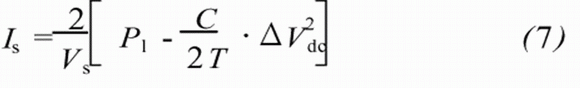 式(7)說明,如果Is不同于2/Vs*Pl時,直流側(cè)電容電壓將會有波動;Is可以由直流側(cè)電容電壓Vdc的變化量ΔVdc確定。