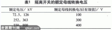 我國國家標準GB1985-2004《高壓交流隔離開關和接地開關》中,以規范性附錄B給出了隔離開關開合母線轉換電流的要求和試驗方法。對空氣絕緣隔離開關,其額定母線轉換電流值應為80%額定電流,最大不超過1600A,額定母線轉換電壓從表1中選取;試驗次數為100次開合操作循環。至于額定轉換電流最大不超過1600A,是因為通常是按額定短時耐受電流而不是按額定電流來選用隔離開關的,因此長期通過隔離開關的最大電流比其額定電流小得多,所以其母線轉換電流最大值可定為1600A。1986年中國電力科學研究院高壓開關研究所為了提出我國隔離開關開合母線轉換電流的技術條件,曾經用計算機計算和分析了國內10~500kV幾個電網典型接線的母線轉換電流,結果符合不超過1600A的規定。