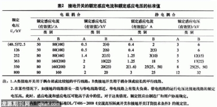 國標GB1985中以規范性附錄C給出了接地開關開合感應電流的要求和試驗方法。接地開關的額定感應電流和額定感應電壓的標準值,應從表2中選取,試驗次數為10次開合操作循環。