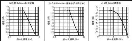 圖2 Butterworth (a)、Chebyshev (b)和Bessel (c)低通5階濾波器的頻率響應