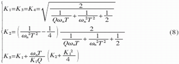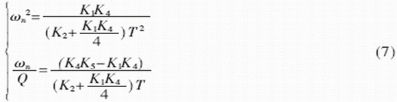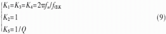令濾波器的中心角頻率為ωn,品質因數為Q,于是有: