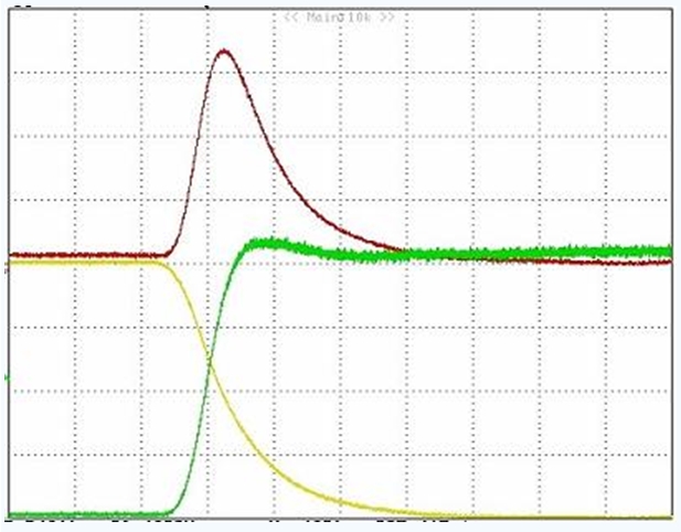 下圖是MOS管導(dǎo)通時的波形??梢钥闯?,導(dǎo)通瞬間電壓和電流的乘積很大,造成的損失也就很大。降低開關(guān)時間,可以減小每次導(dǎo)通時的損失;降低開關(guān)頻率,可以減小單位時間內(nèi)的開關(guān)次數(shù)。這兩種辦法都可以減小開關(guān)損失。