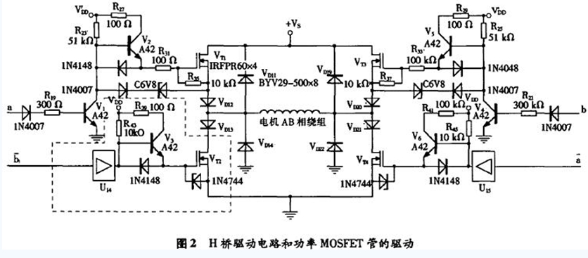圖2給出了驅動器AB相線圈功率驅動部分原理圖。