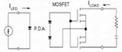 圖1表示FET型半導體繼電器是一種最基本的電路。該電路因輸出元件的功率MOSFET是電壓驅動型元件,因此,由于光電二極管陣列(P.D.A)供給的電壓,而柵極電容被充電,通過使柵極電壓上升到開啟電壓值(門檻電壓),就可使繼電器動作。