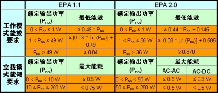 表1:美國(guó)環(huán)保署“能源之星”外部電源的1.1及2.0版規(guī)范。