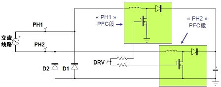圖3:傳統(tǒng)的無橋PFC結(jié)構(gòu)示意圖。