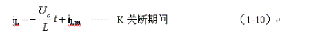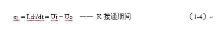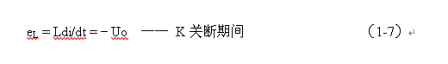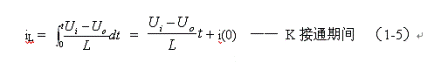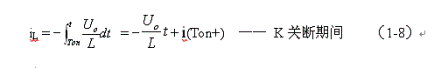 式中–Uo前的負(fù)號,表示K關(guān)斷期間電感產(chǎn)生電動勢的方向與K接通期間電感產(chǎn)生電動勢的方向正好相反。對(1-7)式進行積分得: