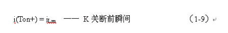式中i(Ton+)為控制開關(guān)K從Ton轉(zhuǎn)換到Toff的瞬間之前流過電感的電流,i(Ton+)也可以寫為i(Toff-),即:控制開關(guān)K關(guān)斷或接通瞬間,之前和之后流過電感L的電流相等。實際上(1-8)式中的i(Ton+)就是(1-6)式中的iLm,即:
