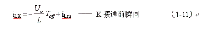 當(dāng)控制開關(guān)K由接通期間Ton突然轉(zhuǎn)換到關(guān)斷期間Toff的瞬間,流過電感L的電流iL達(dá)到最大值: