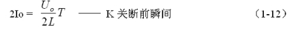由圖1-4可以看出:當控制開關K的占空比D小于0.5時,流過濾波電感L的電流iL出現不連續,輸出電流Io小于流過濾波電感L最大電流iLm的二分之一,濾波輸出電壓Uo的電壓紋波ΔUP-P將顯著增大。因此,串聯式開關電源最好不要工作于圖1-4的電流不連續狀態,而最好工作于圖1-3和圖1-5表示的臨界連續電流和連續電流狀態。