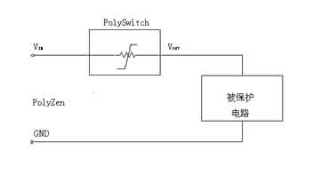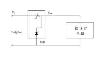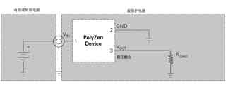 PolyZenTM元件器件是由精密齊納二極管和聚合物正溫度系數(PPTC)元件組合而成的集成電路。它是用于防止感應尖峰電壓、瞬間高電壓、錯用電源適配器對電路產生過壓、過流危害的保護器件,內部結構如圖14所示。其典型應用電路如圖15所示。在圖15中,RLOAD為被保護的下游電路。