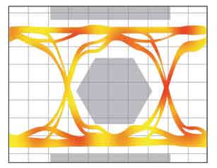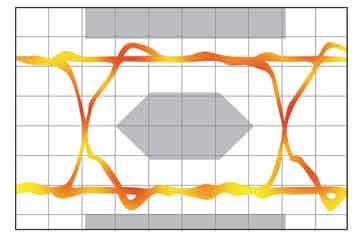采用硅ESD保護元件在2.25GHz時的眼圖如圖9所示,而采用PESD元件在3.4GHz時的眼圖如圖10所示,這兩圖的比較說明了PESD的優良性能。