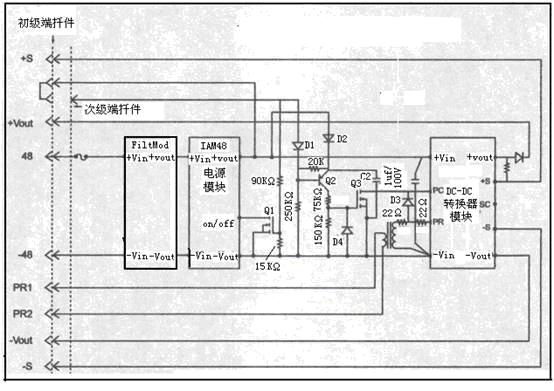 當(dāng)48V母線關(guān)斷時(shí),母線上的保持電容可通過(guò)并聯(lián)開關(guān)迅速放電。除了通斷控制功能外,IAM48模塊還具有限制浪捅電流的功能,并且與FiltMod模塊或EMI濾波器模塊配合,還可完成瞬變過(guò)電壓保護(hù).通信設(shè)備中為了滿足EMC{電磁兼容)標(biāo)準(zhǔn),通常都采用IAM48和FitMod模塊(見(jiàn)圖1中FitMod模塊與IAM48模塊的連接)。在通信設(shè)備中,都要求電源模塊具有熱插拔功能,因此應(yīng)選用lAM48電源模塊或其他可限制浪涌電流的模塊。