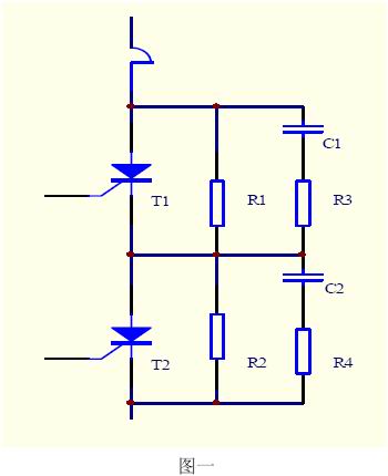通常使用兩只晶閘管串聯(lián)工作以解決單只晶閘管耐壓不足的問(wèn)題。這就需要解決晶閘管的工作電壓平均分配問(wèn)題,包括靜態(tài)均壓與動(dòng)態(tài)均壓。靜態(tài)均壓可采用無(wú)感電阻串聯(lián)分壓的方式解決;動(dòng)態(tài)均壓比較復(fù)雜,這是因?yàn)椋涸?shù)dv/dt的差異以及反向恢復(fù)時(shí)間的差異導(dǎo)致開通與關(guān)斷過(guò)程中元件承受的電壓分配不均,極端情況可使支路電壓全部加在一只晶閘管上。
