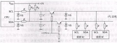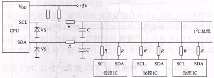 掛接在I2C總線上的受控集成電路大多屬于模擬電路,而受控集成電路中的I2C總線接口電路則屬于數字電路。為避免數字電路與模擬電路之間的互相干擾,常為數字電路與模擬電路設置單獨的供電端子,即設置I2C總線接口電路專用電源端子(或數字電路電源引腳)。如果I2C總線接口電源端子沒有電壓,則這塊集成電路不能正常工作。