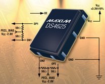 DS4625很好地解決了高頻、大電流設(shè)計(jì)中小尺寸陶瓷封裝常見的散熱問題。集成散熱焊盤為晶體提供有效的散熱通道,確保在-40°C至+70°C溫度范圍內(nèi)可靠工作。DS4625采用基頻AT切晶體技術(shù)制造(無泛音),基于PLL的低噪聲振蕩器采用Maxim的SiGe工藝設(shè)計(jì)。整個(gè)設(shè)計(jì)方案具有< ±7ppm (10年以上)的超低老化率和優(yōu)異的頻率穩(wěn)定性,由電壓、溫度、初始容差和老化引起的變化小于±50ppm。與競(jìng)爭(zhēng)器件(如:基于SAW的振蕩器設(shè)計(jì))相比,DS4625能夠以更小的封裝尺寸提供同等級(jí)別的抖動(dòng)性能,在-40°C至+70°C較寬的溫度范圍內(nèi)具有更好的穩(wěn)定性(分別為±50ppm和±100ppm或更大)。