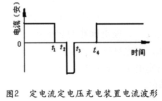 第二控制信號是開始去極化信號,它經過放電前停止充電延時電路延時(t1-t2)后,發出放電開始脈沖,打開放電開關,蓄電池開始向放電電阻放電并經過放電延時電路延時(t2-t3)后,發出放電關脈沖,結束放電。依次重復進行充放電過程,直至充電結束。第三個控制信號送給開始放電計時器,使其從第一次去極化放電開始計時,到預定的時間后結束充電,自動關機。用這種方法充電,蓄電池的充電和放電電流波形如圖2所示。上述兩種方法是蓄電池充電方法的改進方向。我國采用的快速充電方案很多,性能差異很大。各種充電方法對蓄電池的壽命影響也大不相同。這兩種方法在理論上比較適合對蓄電池充電的要求。