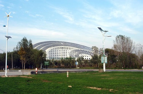 2009年12月24日,圣誕夜,全球最大太陽(yáng)能辦公大樓正式啟用。這座名為“日月壇-微排大廈”的太陽(yáng)能大樓,總建筑面積達(dá)到7.5萬(wàn)平方米,集展示、科研、辦公、會(huì)議、培訓(xùn)、賓館等功能于一身,采用全球首創(chuàng)太陽(yáng)能熱水供應(yīng)、采暖、制冷、光伏發(fā)電等與建筑結(jié)合技術(shù),是目前世界上最大的集太陽(yáng)能光熱、光伏、建筑節(jié)能于一體的高層公共建筑。