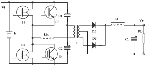 這種技術因通態(tài)損耗很低而使得DC/DC變換器的效率很高。但需工作頻率相對較低,一般選取20~40kHz。由于半橋組合開關只需兩個開關,總的開關器件的數(shù)目少,使可靠性顯著提高。