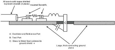 測試電感性能的最有效方法就是將被測試電感放置在最終開關電源電路上,然后對此電路的效率進行測量。但是,這種測試方法需要有最終電路,不易采用。現在,有一種相對簡單的測試方法,可以在設計開關電源前對電感的磁芯損耗進行測試(在其設定的開關頻點上)。首先,將磁芯串連放置在低損耗電容介質上(比如鍍銀云母)。然后,用一系列共振模驅動。其中介質的電容值需要與被測電感的開關頻率一致。最后采用網絡分析儀來完成整個測試過程(信號發生器加上一個射頻伏特計或者功率計也可以完成測試)。測試設備的結構如圖2所示