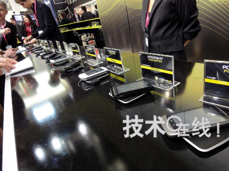 此次展示的15款手機均配備Powermat Powerpak的試制品