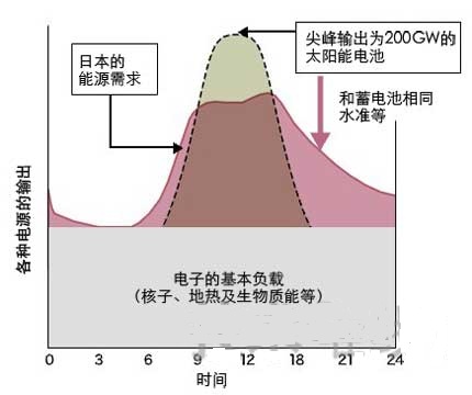 與市電同價的太陽能很可能加快引進在工廠和其他企業(yè)設(shè)施中,使它得以符合或超過日本政府的“2020年以前28GW,2030年以前53GW”的目標(biāo)。日本新能源產(chǎn)業(yè)技術(shù)綜合開發(fā)機構(gòu)(NEDO)推出的太陽能電池采用預(yù)測(如出版PV2030)中預(yù)估在2030年前將安裝高達201.8GW容量。此數(shù)字假設(shè)最大的采用率,每隔一間工廠20%的屋頂面積及所有房屋的1/3都裝有太陽能電池。