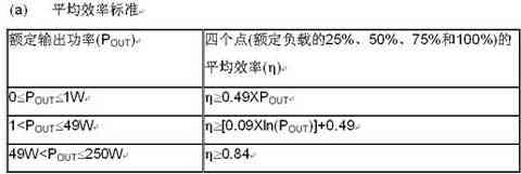 表1:外部AC/DC和AC/AC電源的能源之星標準。