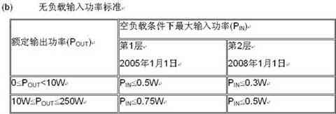 為了降低待機功耗并提高整體負載范圍,國際上正在制訂新的標準。其中,美國環保總署(EPA)的“能源之星”是國際認可度最高的標準之一。能源之星包含了廣泛的不斷完善的標準,以實現在空負載和輕負載條件下的節能,在標準工作模式下更高的效率,更少的總諧波失真(THD)以及一致的單位功率因數(PF)。表1就是正在制定的這些標準的其中一個例子,顯示了單一電壓外部AC/DC和AC/AC電源的能源之星標準。