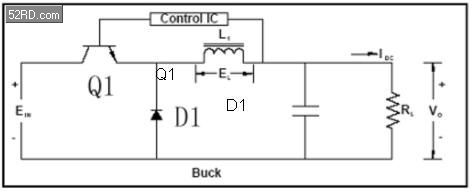 圖1所示為一個降壓拓撲結構電源的架構,該構架廣泛應用于輸出電壓小于輸入電壓的系統。在典型的降壓拓撲結構電路中,當開關(Q1)閉合時,電流開始通過這個開關流向輸出端,并以某一速率穩步增大,增加速率取決于電路電感。根據楞次定律,di=E*dt/L,流過電感器的電流所發生的變化量等于電壓乘以時間變化量,再除以這個電感值。由于流過負載電阻RL的電流穩定增加,輸出電壓成正比增大。