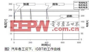 不同于工業(yè)應(yīng)用中電機(jī)拖動(dòng),混合動(dòng)力車輛驅(qū)動(dòng)工況更復(fù)雜,例如對(duì)應(yīng)城市工況,需要頻繁切換于加速、減速、巡航各個(gè)狀態(tài),因此通過IGBT的電流、電壓并非常量,而是隨車輛工況反復(fù)循環(huán)波動(dòng),IGBT模塊需要在電流、電壓循環(huán)沖擊下可靠運(yùn)行。