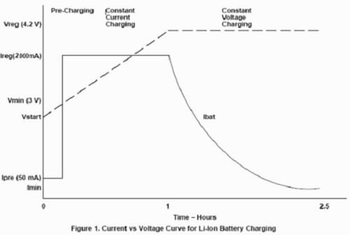 由于MSP430F20X3系列的指令速度可達16MIPS,且SD_16的采樣速度為4kSPS,而且電池電壓/電流/溫度變化緩慢,因此對電池組中單節電池電壓/電流/溫度檢測采用輪回檢測即可完全滿足系統設計需要;16位的高精度保證了對每節電池溫度、恒流、恒壓等要求的準確控制。對單節鋰電池充電的曲線如圖3。