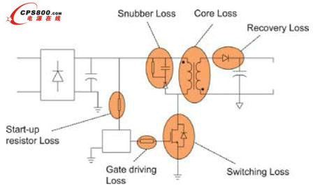 目前,大多數100W以下的電子設備,如電源適配器、充電器、無繩電話、ADSL路由器、LCD顯示器和DVD等等,都是采用離線反激式開關電路,將電網提供的85V~275V交流電轉換為電子設備所需要的直流電壓。正常工作狀態下,反激式開關電源的損耗主要包括導通損耗和開關損耗,以及控制電路的損耗。待機狀態下,因為系統的輸出電流接近于零,導通損耗可以忽略,開關損耗和控制電路的損耗成為主要的系統待機功耗。降低待機功耗,應著眼于開關損耗和控制電路的損耗的降低。
