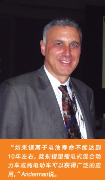 “如果鋰離子電池壽命不能達(dá)到10年左右,就別指望插電式混合動(dòng)力車(chē)或純電動(dòng)車(chē)可以獲得廣泛的應(yīng)用,”Anderman說(shuō)。